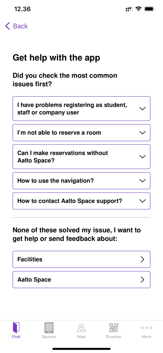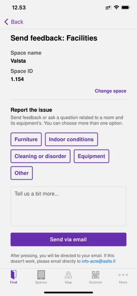 You can now easily leave feedback on the university's facilities using the new feature of the Aalto Space application. A simple form has been generated for writing feedback, which speeds up leaving the feedback.