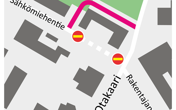 Sähkömiehentien alkupää suljetaan jälleen ja ajoreitti Maarintalolle tehdään ISS:n varikon / Otakaari 8:n pysäköintialueen kautta.