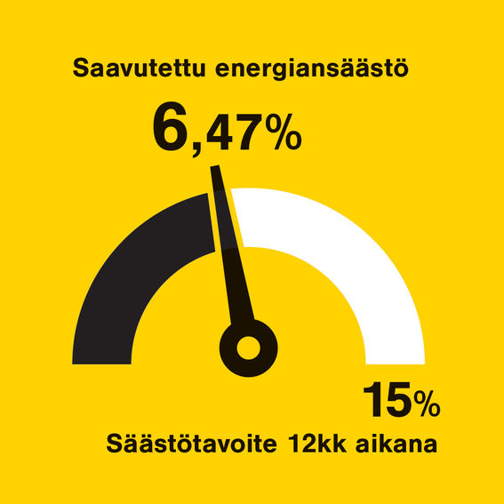 Useita energiansäästötoimia on jo tehty, ja säästötulos helmikuussa 2023 on sähkön osalta -3,98% ja lämmön osalta -14,11%. Kokonaistavoitteesta on helmikuun loppuun mennessä säästetty 6,47 prosenttiyksikköä, eli noin 45%.
