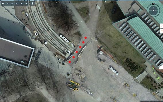 Kauppakeskus A Blocin edustalla tehdän pikaraitiotien rakentamiseen liittyviä töitä. Jalankulun ja pyröilyn reitti, joka menee radan yli, suljetaan 31.5. n. klo 7:00-8:00 ja tiistaina 1.6 n. klo 14:30-15:30.