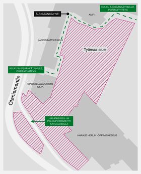 Voit valita myös esteettömän reitin kampuksella navigointiin.