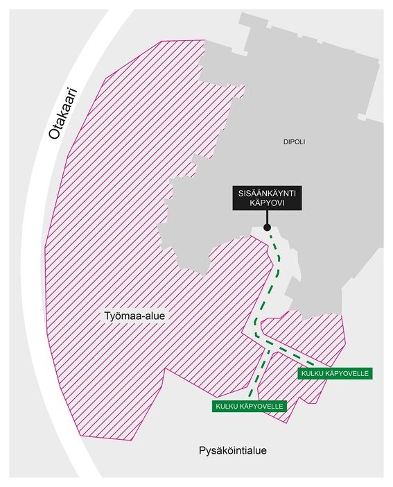 Ulkoalueita ja jalankulkureittejä parannetaan Otakaari 1:n ja Dipolin ympäristössä